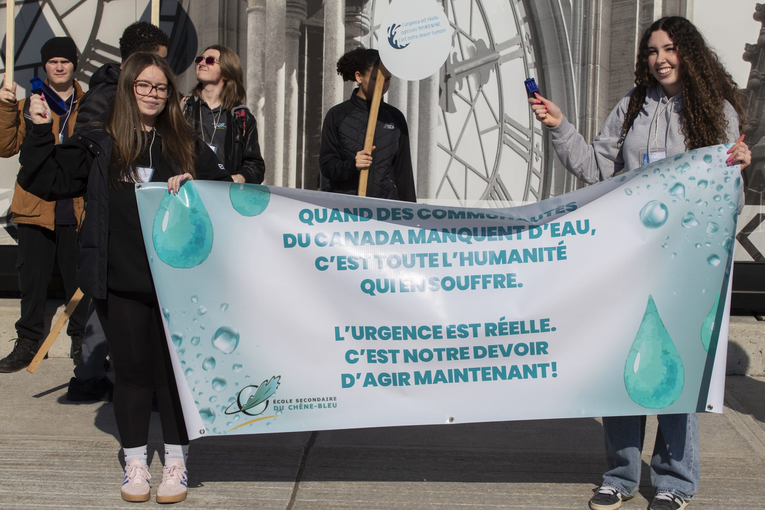 « Les peuples autochtones qui vivent sur ces terres depuis des milliers d’années méritent les mêmes services de base que le reste de la population canadienne. L’accès à l’eau potable est un droit fondamental, pas un privilège », a déclaré avec vigueur Lorence Davignon, élève de la cinquième secondaire et marraine de l’événement.