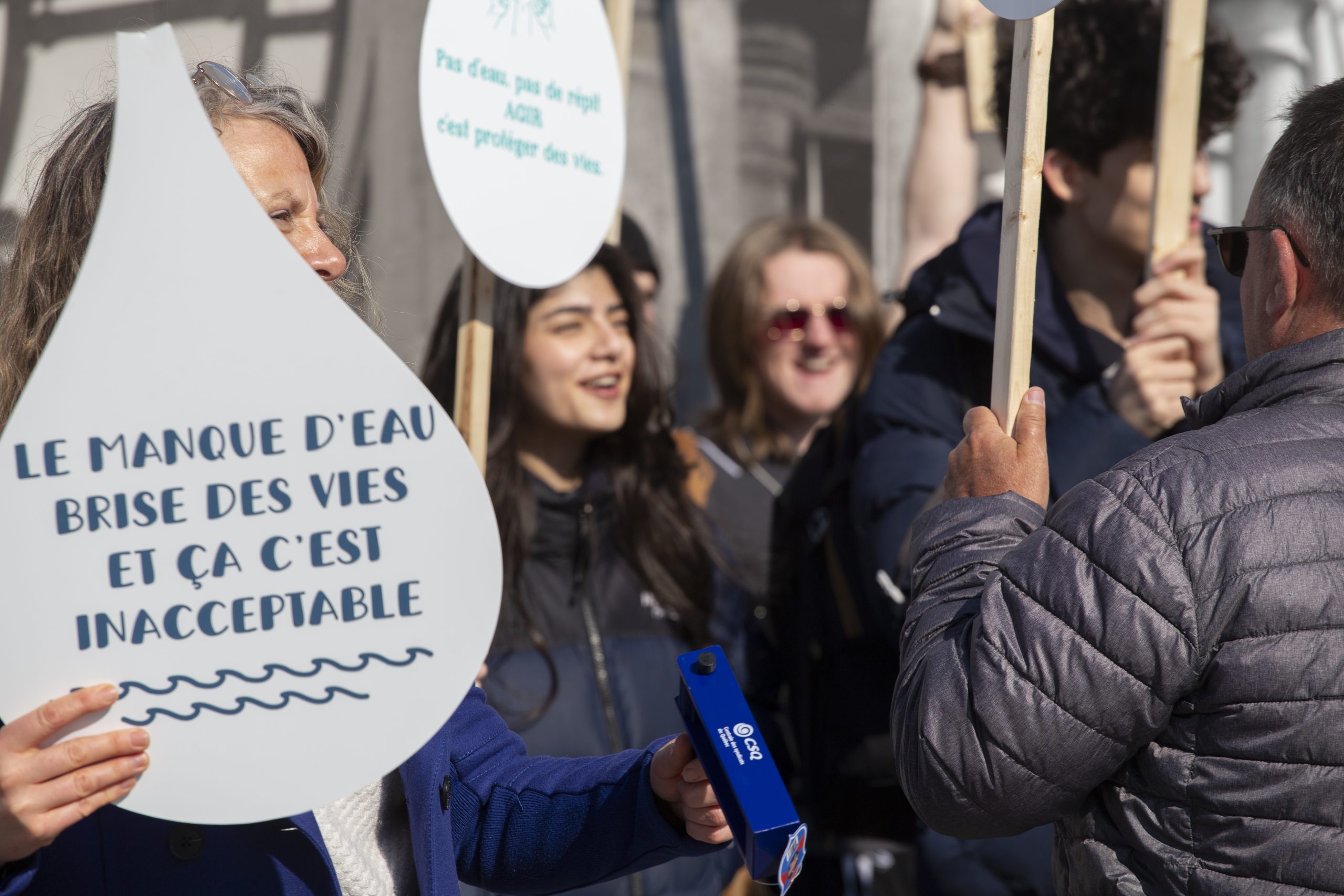 « Je suis fier de vous voir ici ce matin. Vous êtes venus faire un geste hautement politique pour l’accès à l’eau. Par votre mobilisation, vous démontrez que vous n’êtes pas centrés uniquement sur votre quotidien, mais que vous êtes impliqués dans les causes sociales qui sont autour de vous. Bravo! », a tenu à exprimer Pascal Côté, vice-président de la CSQ et responsable politique du Mouvement ACTES de la Centrale.