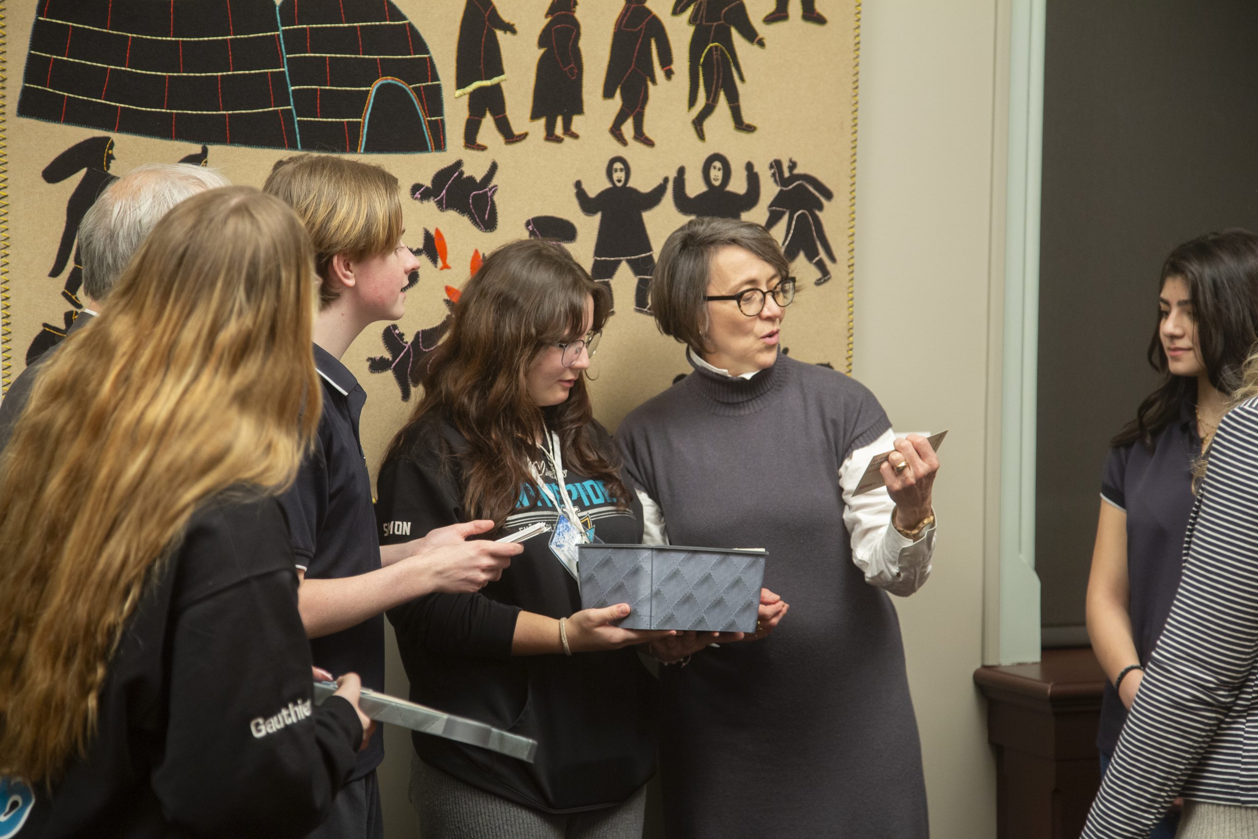 Les élèves de l’École secondaire du Chêne-Bleu ont profité de la mobilisation à Ottawa pour remettre le millier de cartes postales rédigées par les jeunes de leur école, en mains propres, à des parlementaires.