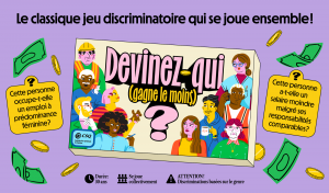 plusieurs fiches informatives ainsi que des cartes de personnages qui illustrent les mythes et les biais entourant l’enjeu de l’équité salariale. Un jeu-questionnaire pour tester vos connaissances en la matière est également disponible en ligne; vous pourriez être surpris de votre résultat!