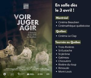 Un nouveau documentaire retrace l’histoire méconnue de la Jeunesse ouvrière catholique (JOC) au Québec. Intitulé Voir-Juger-Agir, le film d’Annie Deniel prendra l’affiche le 3 avril 2026 et amorcera une tournée québécoise. À travers des archives et des témoignages, il met en lumière près d’un siècle d’engagement social par de jeunes travailleuses et travailleurs.