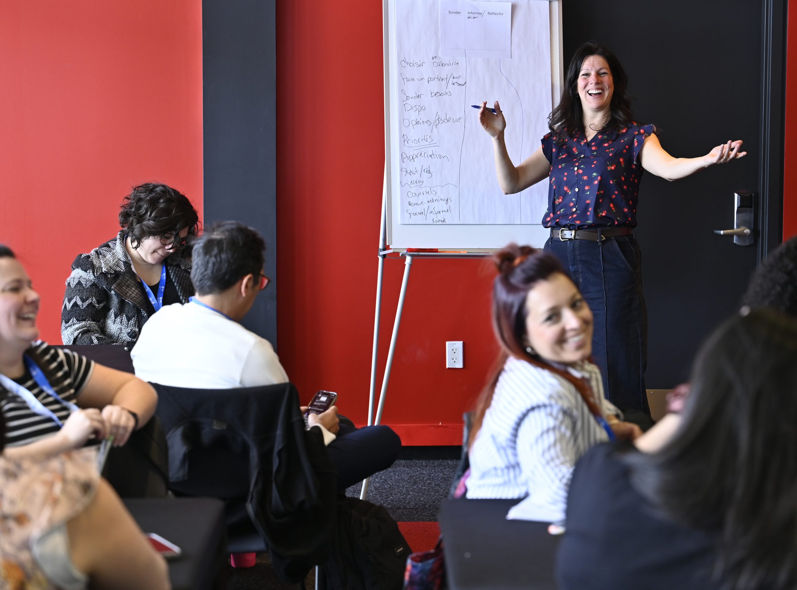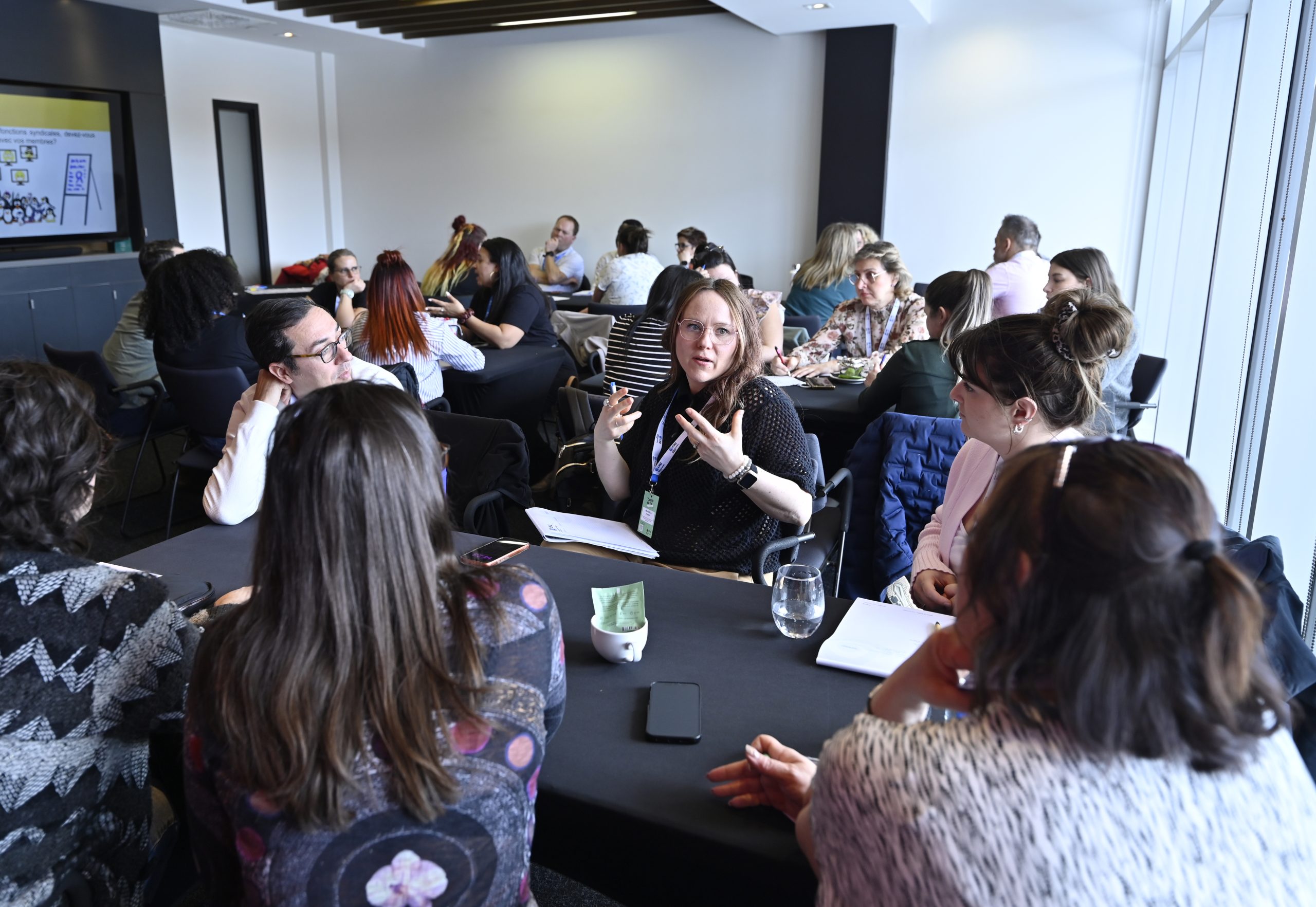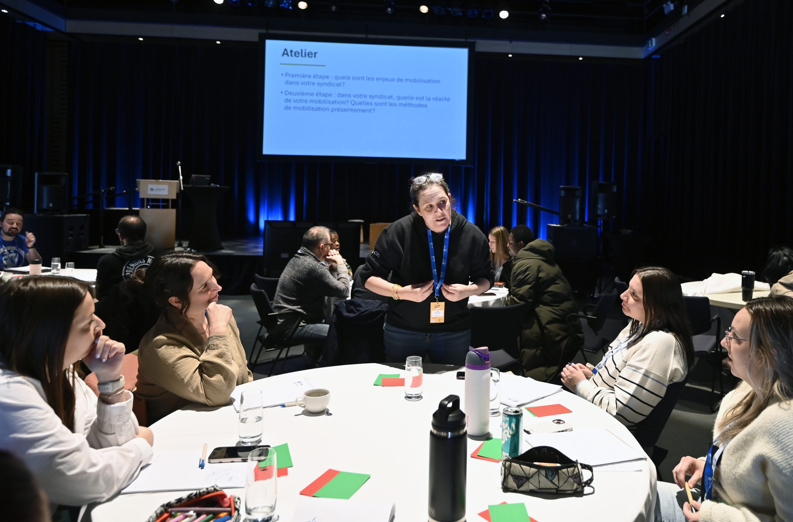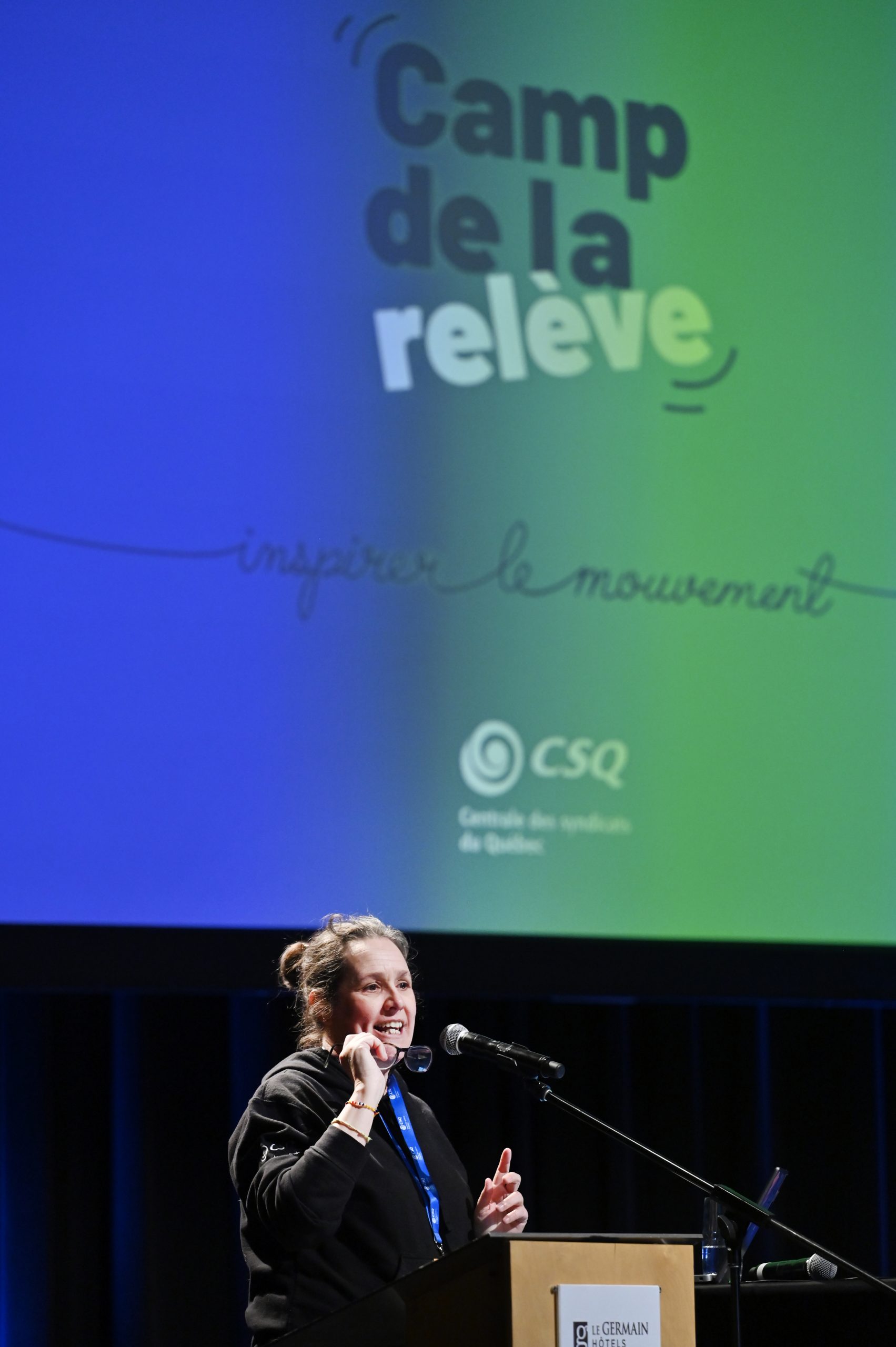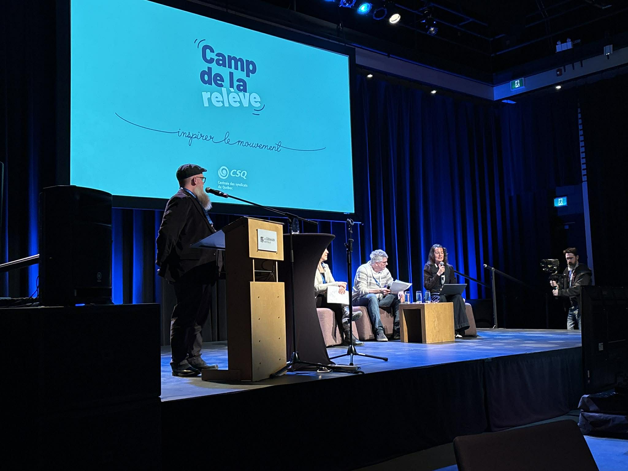 Le Camp de la relève organisé par la CSQ constitue chaque année le moment fort de la semaine. Il réunit une centaine de membres de partout au Québec invités à venir échanger, s’outiller et faire entendre leur voix. L’événement est également l’occasion pour les nouvelles personnes engagées syndicalement de prendre connaissance des enjeux majeurs qui animent la CSQ et le mouvement syndical, comme le financement des réseaux publics, les enjeux féministes et les atteintes à la démocratie.