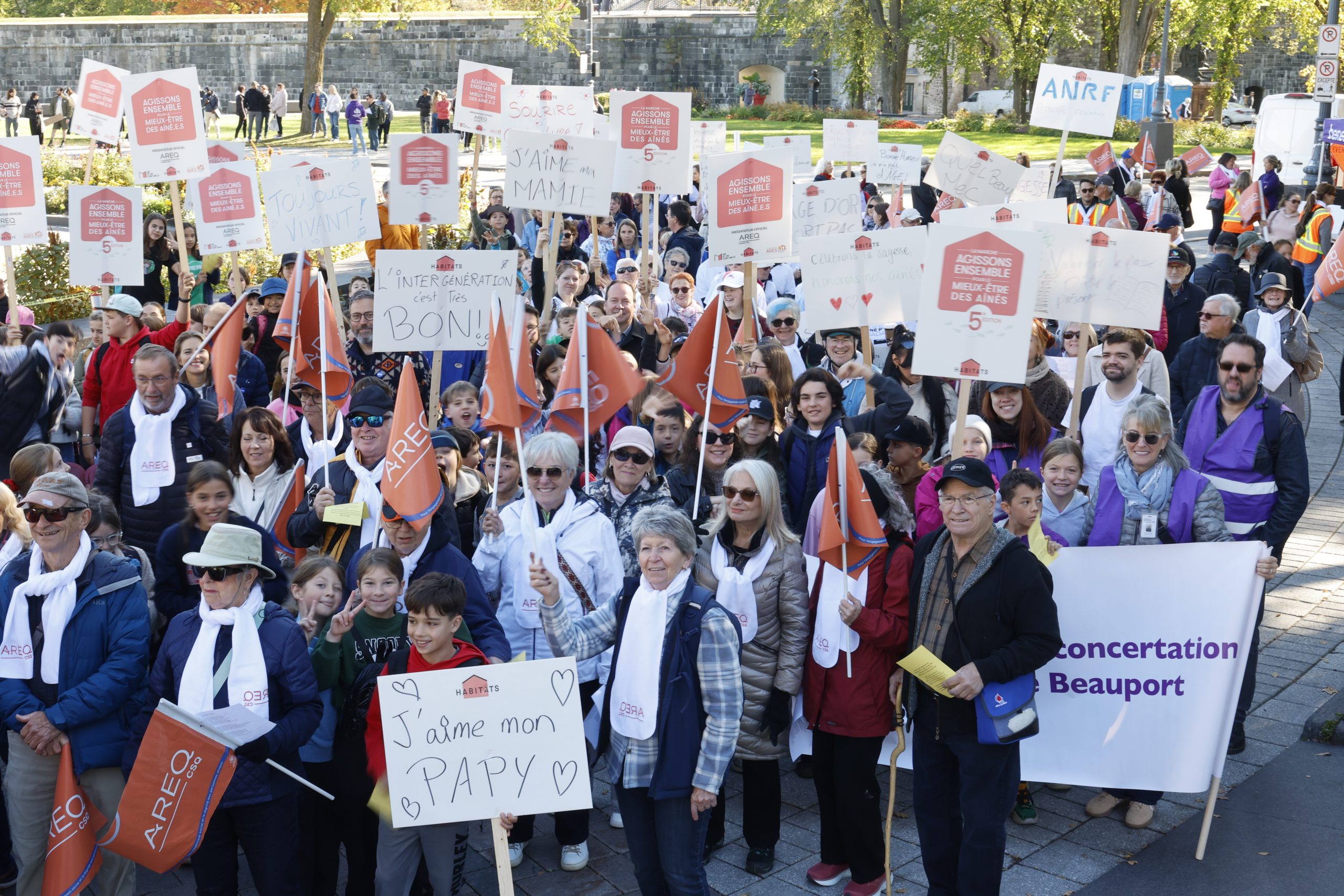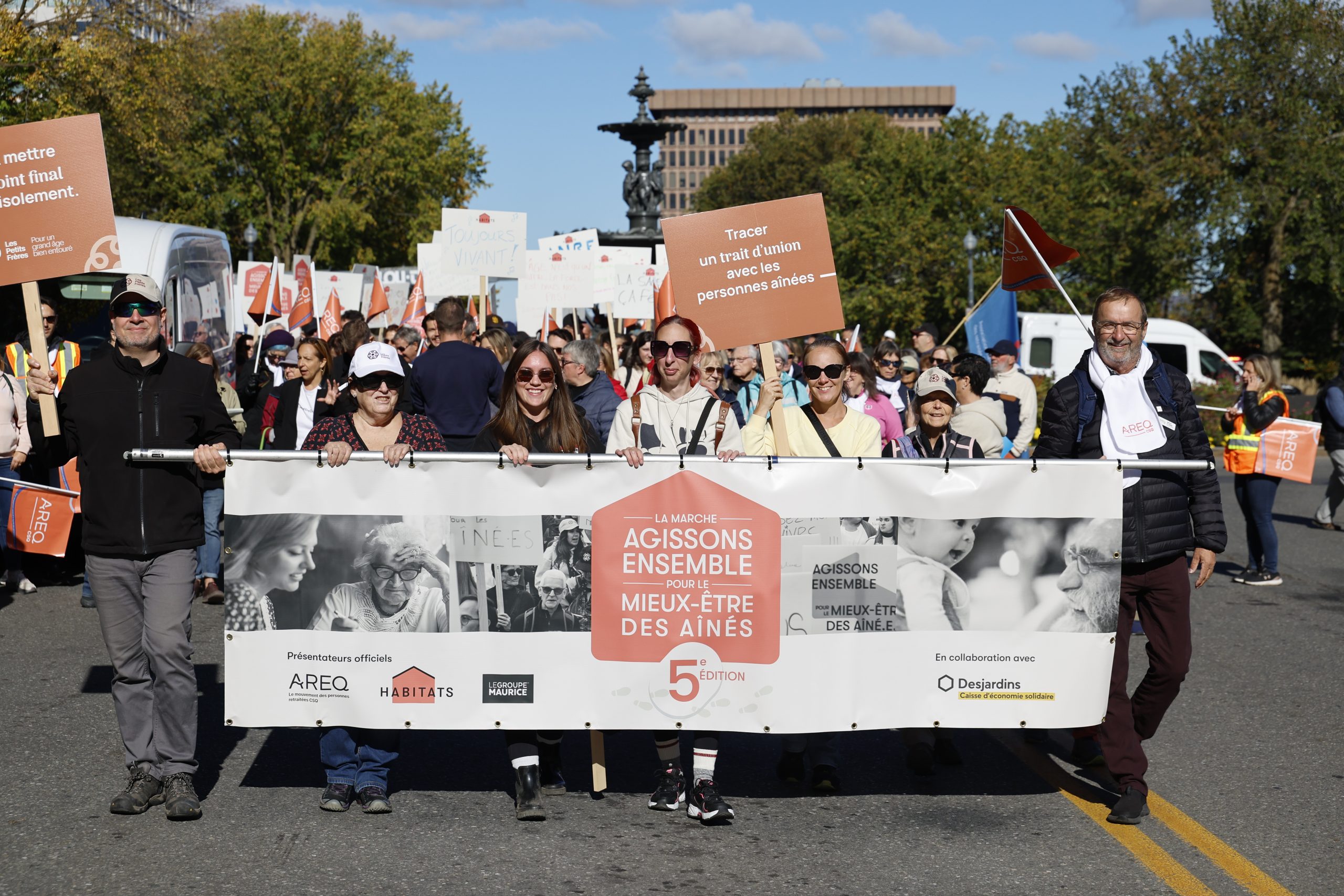 Propulsée par le Mouvement HABITATS, Un et un font mille et la Fondation AGES, et soutenue par l’AREQ, le mouvement des personnes retraitées CSQ ainsi que le Groupe Maurice, cette marche symbolique s’est imposée depuis cinq ans comme un moment fort de la Journée internationale des aînés. Elle vise à transformer les perceptions souvent négatives du vieillissement, à briser les tabous qui y sont liés et à valoriser la place des personnes aînées dans nos communautés.