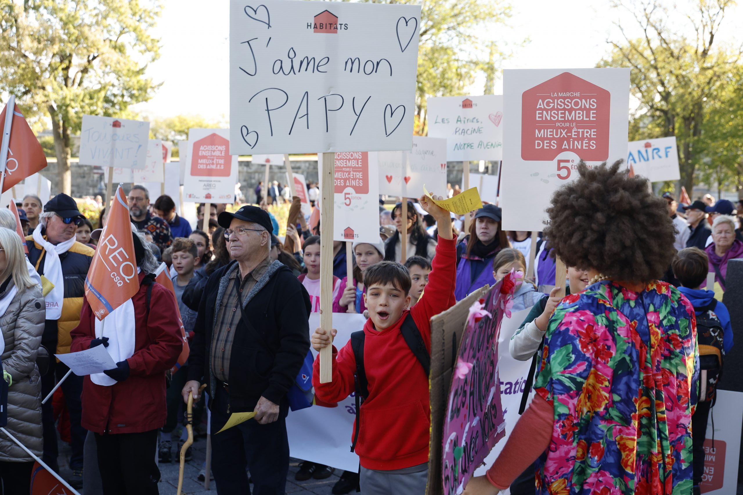 Plus de 2200 personnes se sont mobilisées à Québec, à Montréal et au Témiscamingue le 1er octobre dernier pour participer à la 5e édition de la marche » Agissons ensemble pour le mieux-être des aînés « . Sous le thème » Misons sur nos forces », l’événement auquel la CSQ et l’AREQ ont participé, a mis en lumière la richesse et la contribution des personnes aînées à la société québécoise.